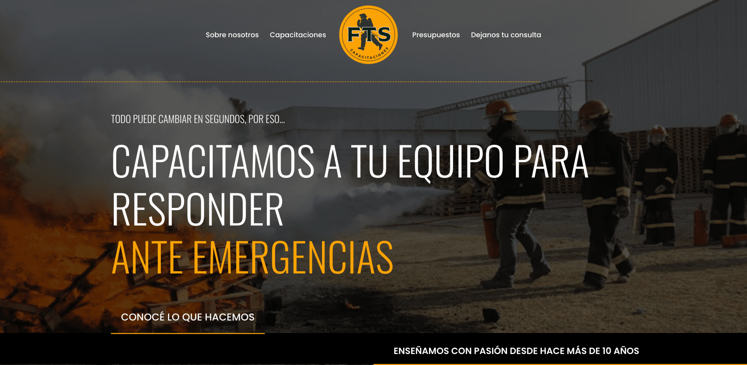 FTS, una empresa dedicada a la capacitación en seguridad ante emergencias, necesitaba un sitio institucional simple y profesional para presentar sus servicios a nuevas empresas clientes.