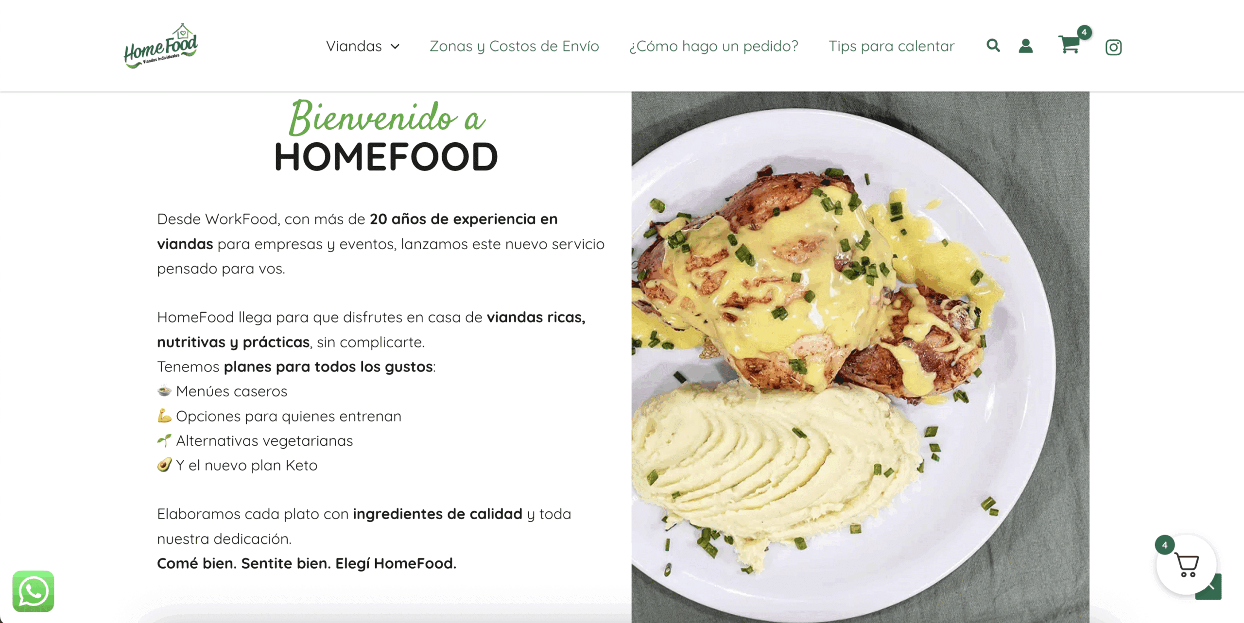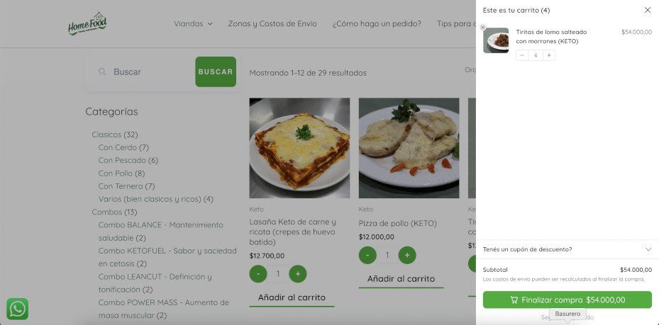 Necesitaban un sitio que permitiera vender viandas individuales, con un mínimo de compra y opciones de envío a CABA, Zona Norte y Zona Oeste.
