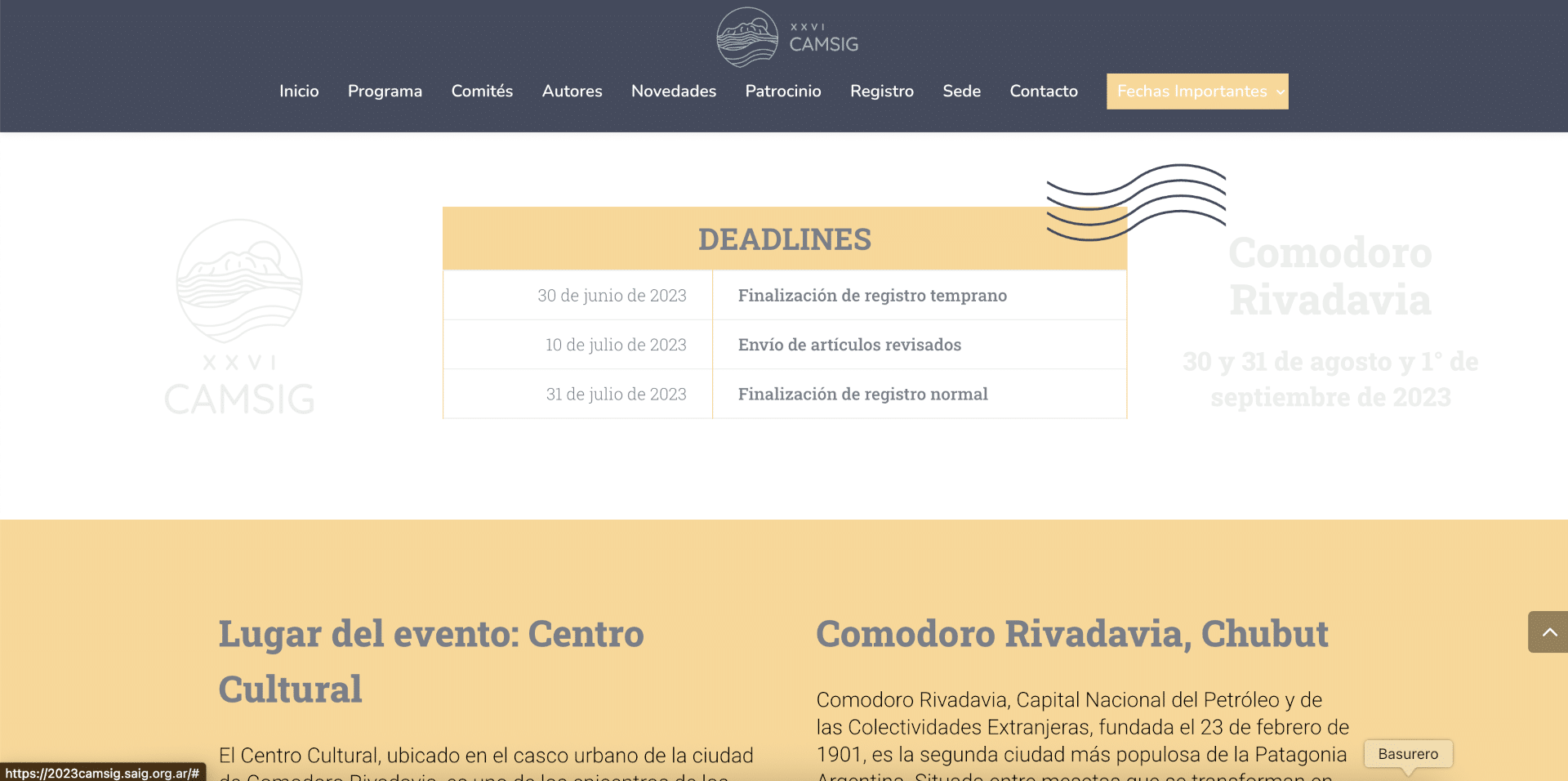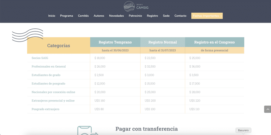 Luego desarrollamos una plantilla web específica para los congresos CAMSIG, basada en la información y estructura necesarias para cada edición.