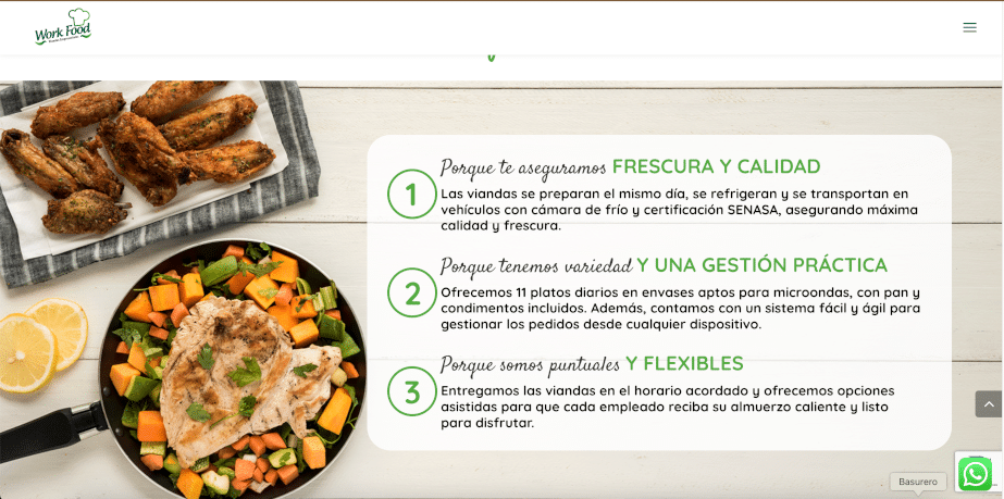 Diseñamos y desarrollamos un sitio web integral en WordPress, con un fuerte enfoque en la página de viandas empresariales, concebida específicamente para campañas de performance.